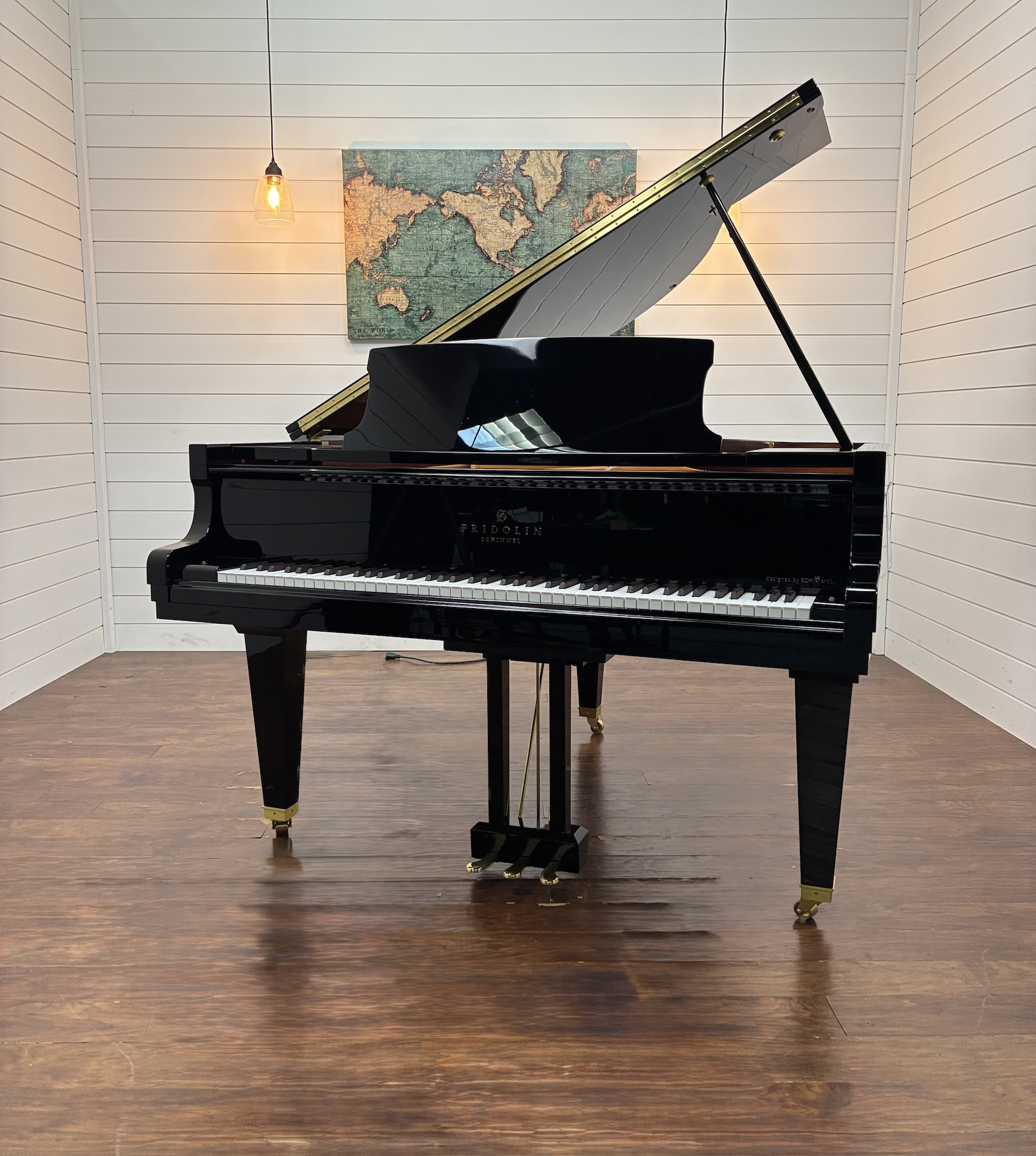 The Fridolin Schimmel F156 is a refined 5′ 2″ baby grand that blends European design with modern craftsmanship. Designed by Schimmel and built in partnership with Guangzhou Pearl River Piano Group, this model delivers a warm, balanced tone with clear treble and rich bass in a compact size ideal for homes, studios, and smaller performance spaces.