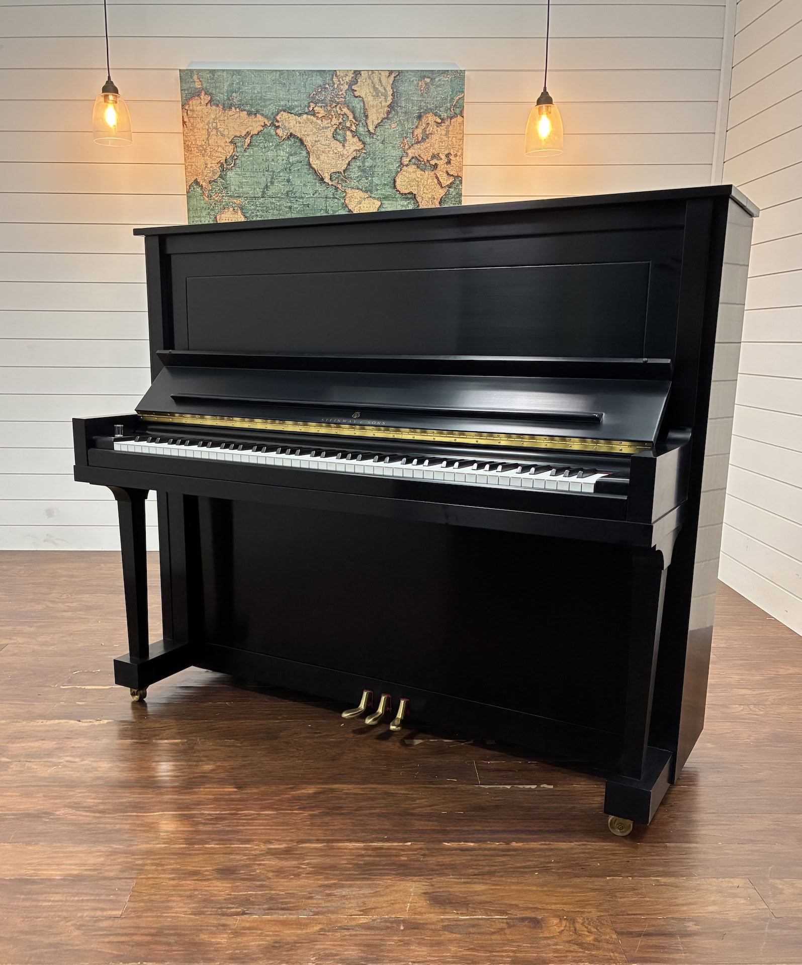 Featuring a solid spruce diaphragmatic soundboard, solid lumber core cabinet, and Steinway’s precision action, this instrument offers exceptional responsiveness, dynamic control, and tonal depth. The bass is rich and resonant, the midrange warm and expressive, and the treble clear—delivering the unmistakable Steinway voice and touch.